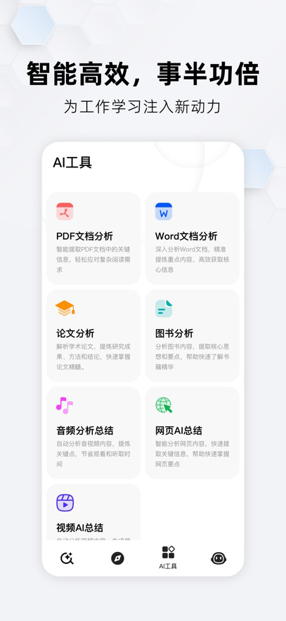 AI工具:配备数十款智能工具,助力你在写作、分析、翻译、旅游规划等方面事半功倍。