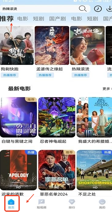 进入app首页,可以根据推荐板块,查看正在热播的剧集