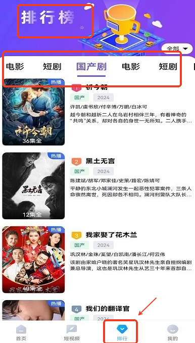 或者用户们可以直接在排行榜页面观看热播剧排行,选择自己喜欢的剧集