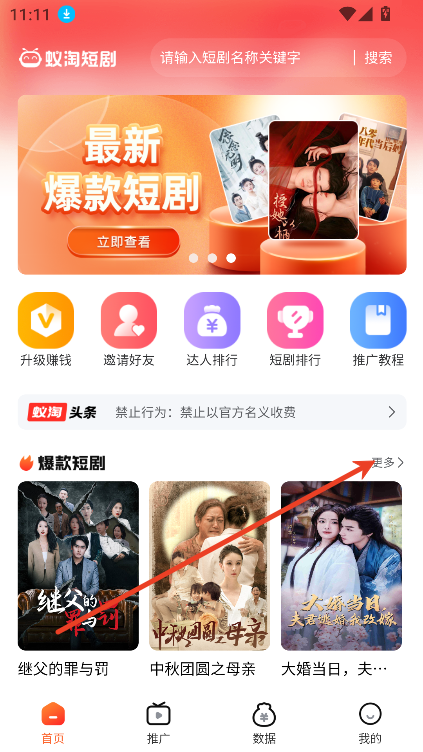 1、进入蚁淘短剧app首页,点击更多,可以查看更多短剧内容