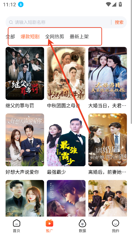 2、提供爆款短剧,最新上架,全网热剪等几个板块