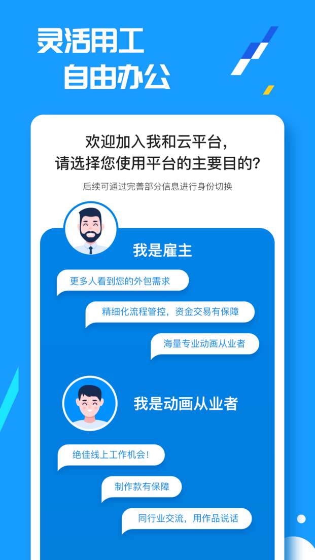 1、我和云为动漫行业提供了个性化的需求分发平台,更方便用户线上发布任务。