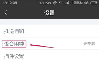 4、设置界面,选择这里的语音闹钟,现在未开启状态。