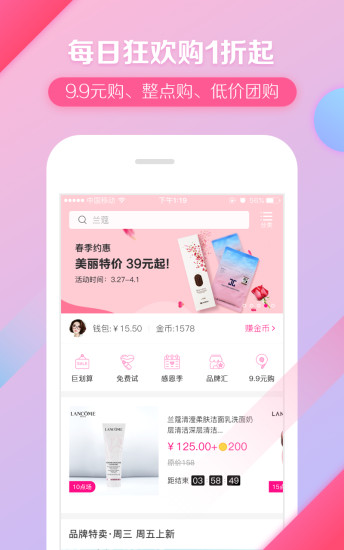 丽人丽妆是一款化妆品商城软件,每天登陆首页参与签到、趣味摇一摇领取更多红包金币优惠券!更有全金币兑换、免费试用、整点特价抢购!更多中小样正装礼包免费领!还有更多更有趣的软件就在当易网,快来下载吧!