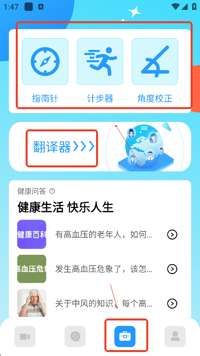用户们还可以使用其指南针,计步器,翻译器等实用工具,满足日常生活中的各种需求