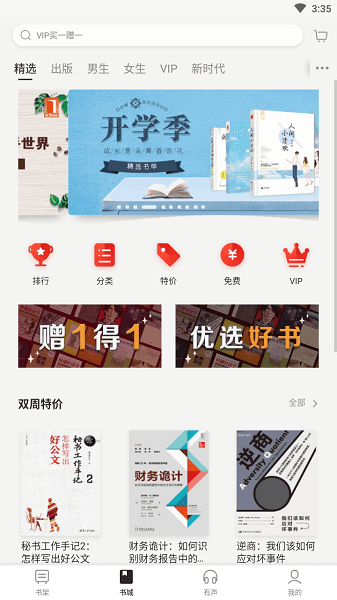 红6月除部分商品外全场电子书1件5折,2件4折;有声书低至1.99元;