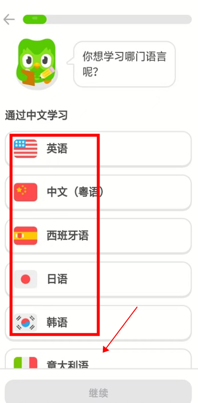 首先,在本站下载并安装好之后,打开app,新手登录的话需要选择自己想要学习的语言