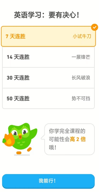 多邻国免费学英语app下载,一款专业的外语学习平台,覆盖近四十多种语言,多邻国通过游戏化的设计,如挑战、奖励和等级系统,使学习变得有趣和互动性强。用户可以像玩游戏一样完成学习任务,获得经验值和奖励,从而提高学习动力和积极性。并且可以针对不同阶段的学生提供定制化语言课程,针对性教学,帮助大家更好的提升外语技能!