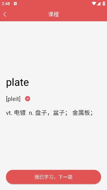 6、对于掌握的词就可以点击我已学习跳转下个词