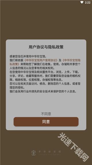 1、首先在本站下载中华珍宝馆app后点击打开并同意协议;
