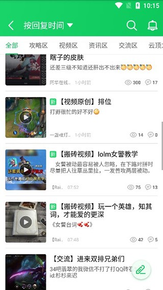 3、在社区版块当中,可以看到众多分区,包括lol手游、原创技术、王者荣耀等等;