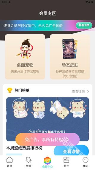 用户点击下方会员中心即可进入会员中心页面,开通会员即可享受免广告、会员壁纸等多个特权。