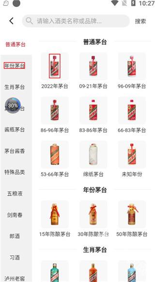 1、普通茅台、生肖茅台、特种茅台、年份茅台、彩色茅台、白酒、洋酒、白酒等。