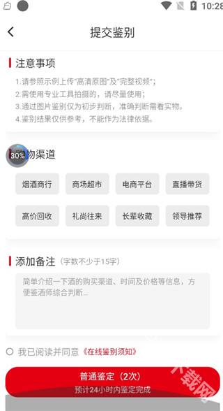 5、选择购买渠道来源,也可添加备注说明,然后点击普通鉴定即可。