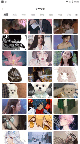 2、主题设定随意变化,文字故事、热门IP、二元、动画、情侣头像、明星爱豆、超美风景、简单个性。