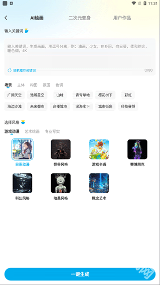 在主页面点击【创作】,这里可以AI绘画或者二次元变身