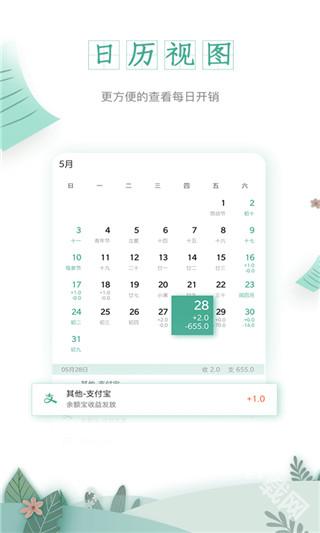 6、通过日历直接添加每日收入和支出数据,应用程序将进行智能统计。