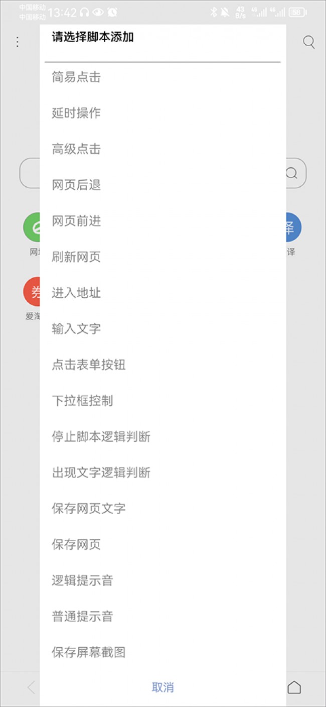 3. 除了支持护眼模式、夜间模式、网页保存、剪贴板、常亮屏,用户可以通过执行脚本来模拟点击网页等操作。