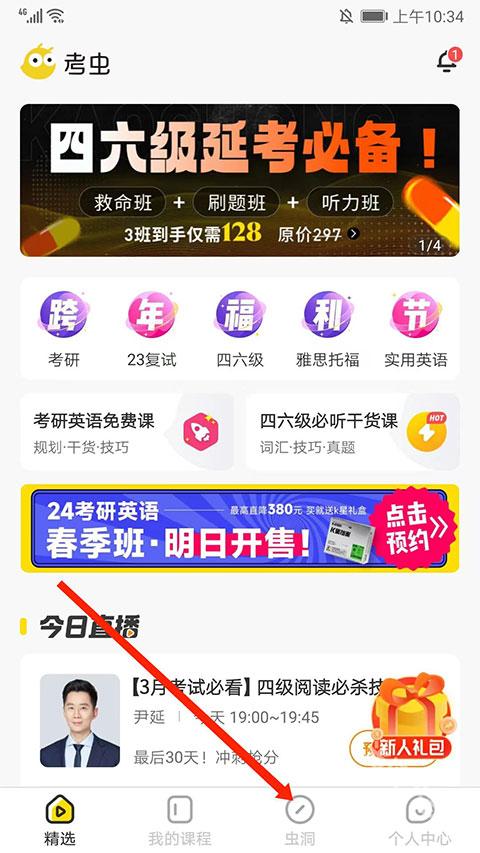 1、打开考虫app,选择下方“虫洞”选项,