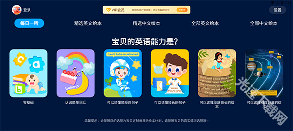 3. 分级阅读,从学前到小学毕业,满足各个层次孩子的英语学习需求。