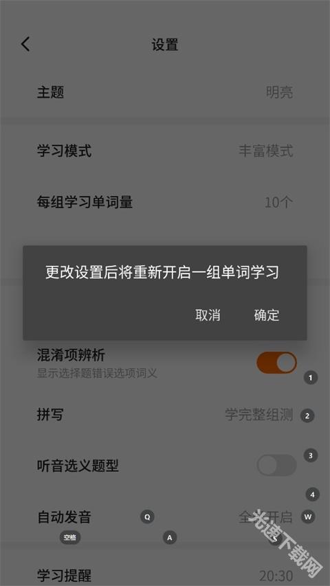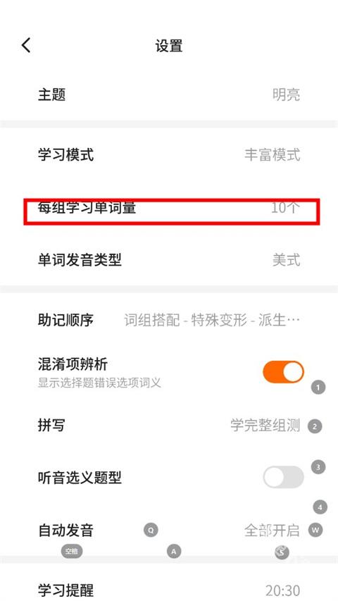 4、有三种单词量模式选择,分别是10个,15个,20个。
