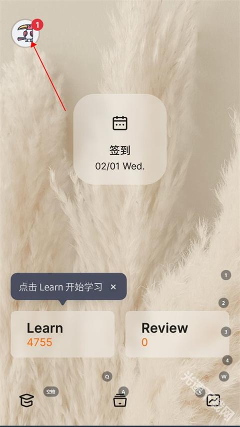 1、打开不背单词app免费最新版,点击左上角个人头像。