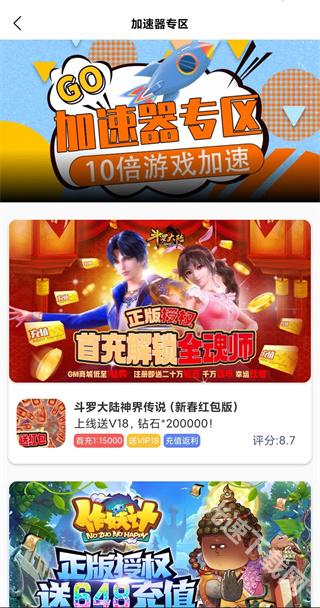 2、进入【加速器专区】页面,该页面的所有游戏都自带加速器哦~