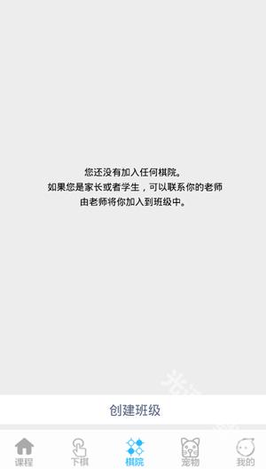 1、在本站下载安装一起学围棋,运行软件,可以看到有课程、下棋、棋院、宠物、我的五个板块;