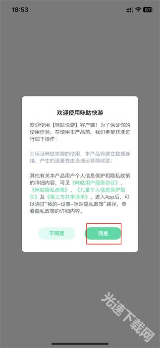 1、进入到软件内之后,玩家需要点击【同意】按钮,以开启软件的应用;