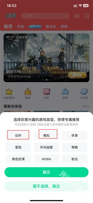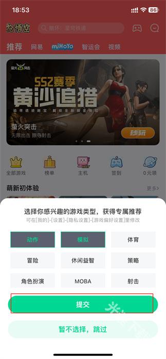2、进入到应用内之后,将会有一个感兴趣类型的选择,可以点击对应的类型标签;