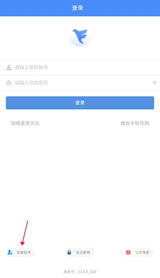 1、下载后打开飞鸽互联APP在飞鸽互联软件界面中,点击“注册账号”链接注册一个账号;
