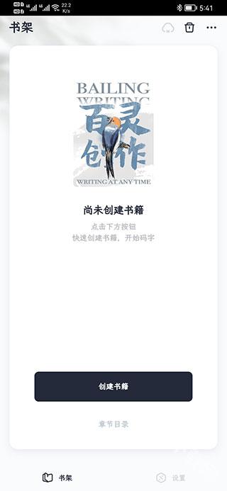1、下载安装后,打开软件,我们看到界面非常简洁,没有广告,是个实打实的创作软件,现在还没有创建书籍,我们点击创建书籍,进行下一步。