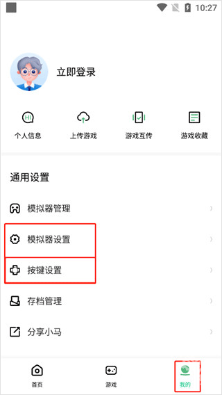 1、下载并安装好软件之后,进入模拟器中下载你想要玩的游戏,之后可以通过“我的”并单击设置,如图