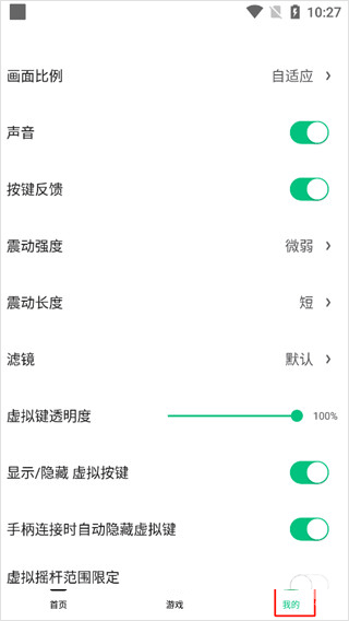 2、自定义调节画面比例、声音、震动强度、显示或隐藏虚拟按键等等;