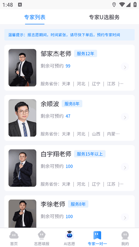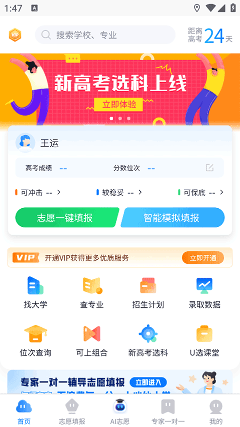 综合专业测评结果、考分、排名,与分数预测模型,基于人工智能算法实现智能志愿推荐,使考生进入最好的大学,学最适合自己的专业。