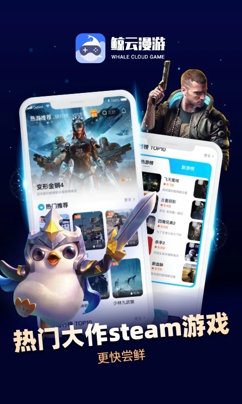 鲸云漫游官方版是一款资源丰富的游戏辅助工具,在鲸云漫游最新版中你可以浏览到非常多的热门游戏,你可以通过排行榜来浏览近期有哪些热门的游戏,点击进入游戏的详情页面还能了解到具体的游戏内容,并且支持用户在APP上游玩游戏,在鲸云漫游官方版中,还支持用户连接你的手柄进行畅快游戏内容,让你的手机秒变电脑畅玩3A大作。
