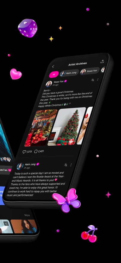 Berriz是Kakao Ent精心打造的全球粉丝社交平台,致力于打破地域与语言的限制,为全球粉丝带来全新体验。在这里,粉丝能依据喜好选择心仪偶像,加入专属交流区。支持文字、图片、视频等多元交流方式,分享偶像资讯、原创作品等内容,还能通过评论、点赞、转发等互动功能,与同好畅聊追星日常。平台依托Kakao旗下丰富艺人资源,提供艺人直播、演出视频等一手内容,助力粉丝与艺人“亲密接触”。