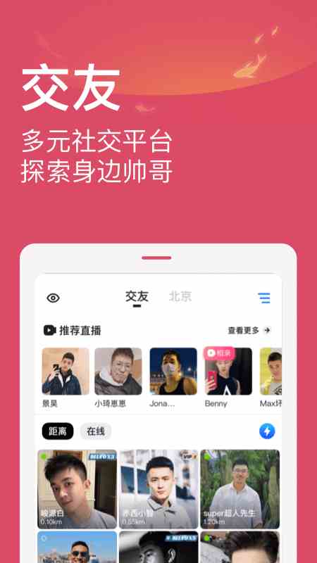 3.专注于手机上的移动社交,为国内同性恋人群提供方便快捷的社交服务。