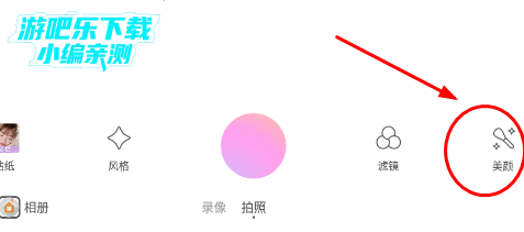进入拍照界面,点击如下图所示的美颜;