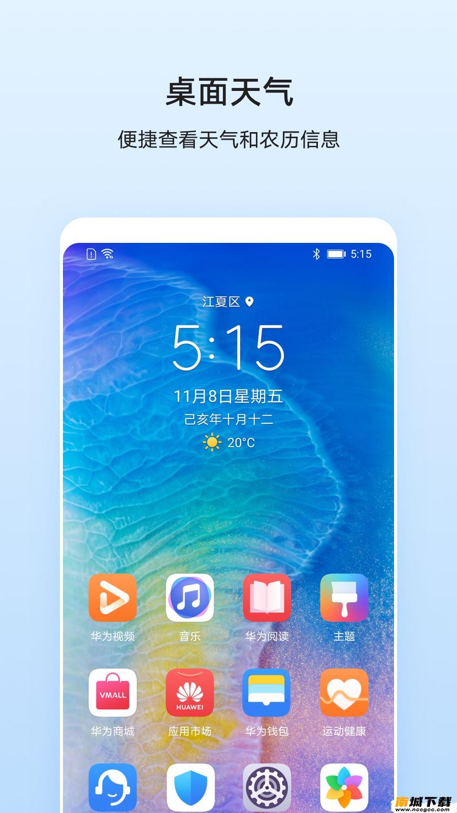 用户还可以设置桌面天气预报,打开手机即可轻松查看天气预报;