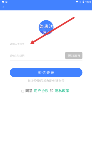 3、在登录界面输入手机号,获取并填入验证码,勾选用户协议和隐私政策,点击短信登录完成首次账号注册与登录。