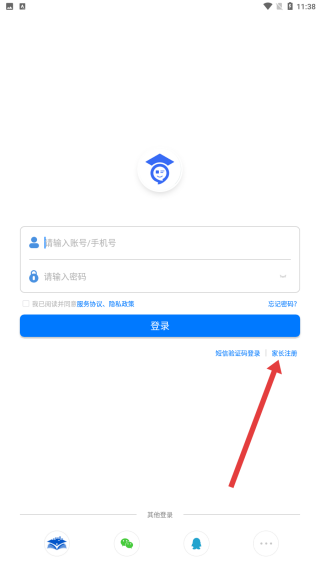 2、在登录界面,点击家长注册按钮,跳转至查找班级页面,开启家长账号注册流程。