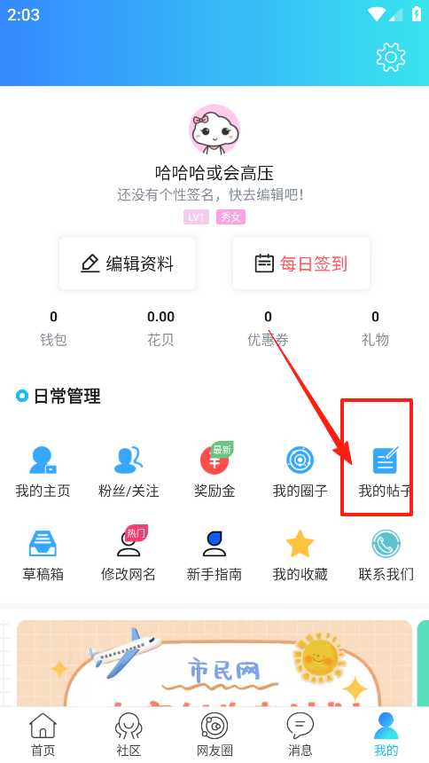 2、在市民网的个人中心页面,有我的帖子功能选项,用户点击该选项,就能查看自己发布过的所有帖子,方便对自己的发帖内容进行管理和回顾。