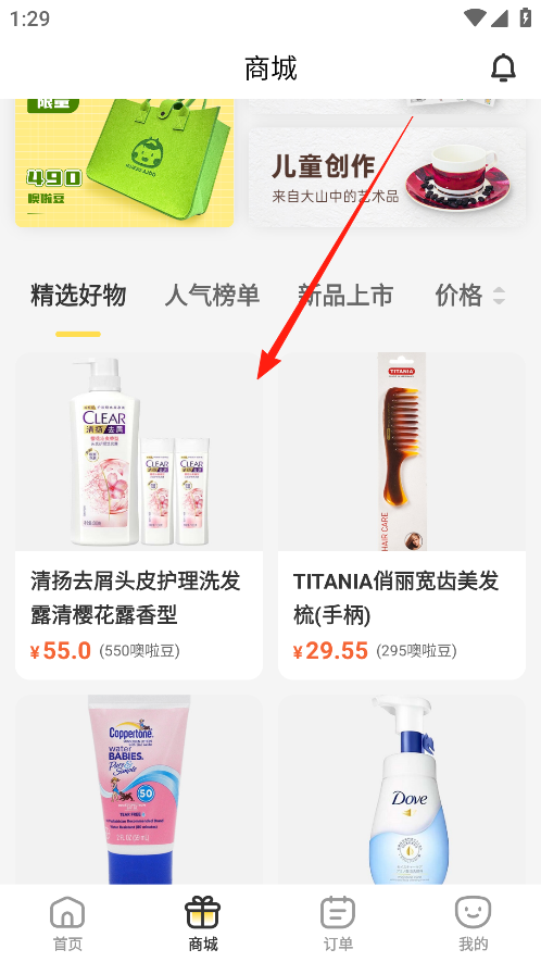 2、此为商城界面,陈列着清扬洗发水,美发梳等各类商品,商品以精选好物,人气榜单等分类展示,用户能浏览不同类别商品,查看价格等信息,方便挑选心仪商品进行后续操作。