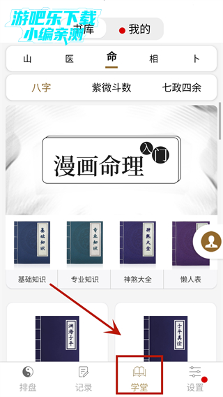 5、在学堂栏可以学习各种命理知识,新手快速入门,更有漫画入门教学,轻松学习。