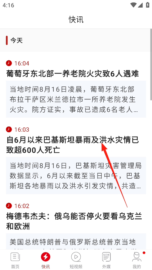 2、这个快讯页面能让你快速了解最新发生的各类新闻,都会及时展示在这里,你可以第一时间知晓天下事,不用到处找新闻啦。