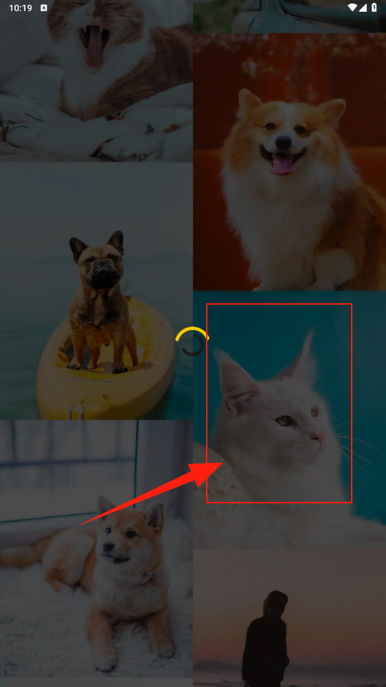 3、在图片浏览页,点击白色猫咪图片,查看该宠物详情,可了解宠物信息或进行互动操作。