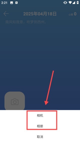 3、最后我们可以从相机拍照记录或者从相册选取作为当前情绪值