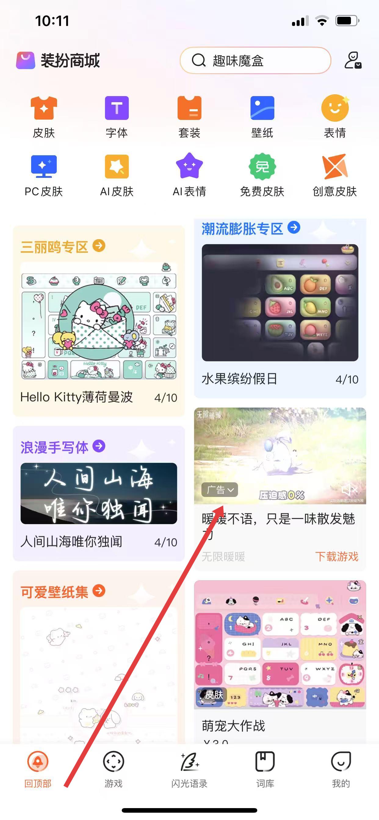1、打开搜狗输入法的首页,部分广告右上角或特定位置,会出现广告标识的小按钮,点击它。