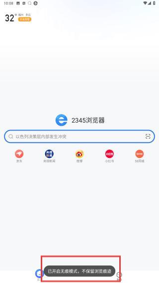 3、点击后界面底部会弹出已开启无痕模式,不保留浏览痕迹的提示,此时即进入无痕浏览状态。